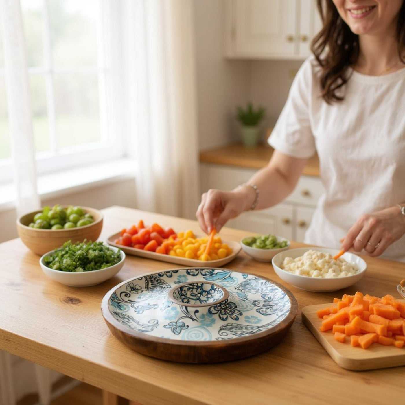 Includes a central dip bowl — perfect for serving chips, nachos, veggies or crackers alongside dips and sauces.