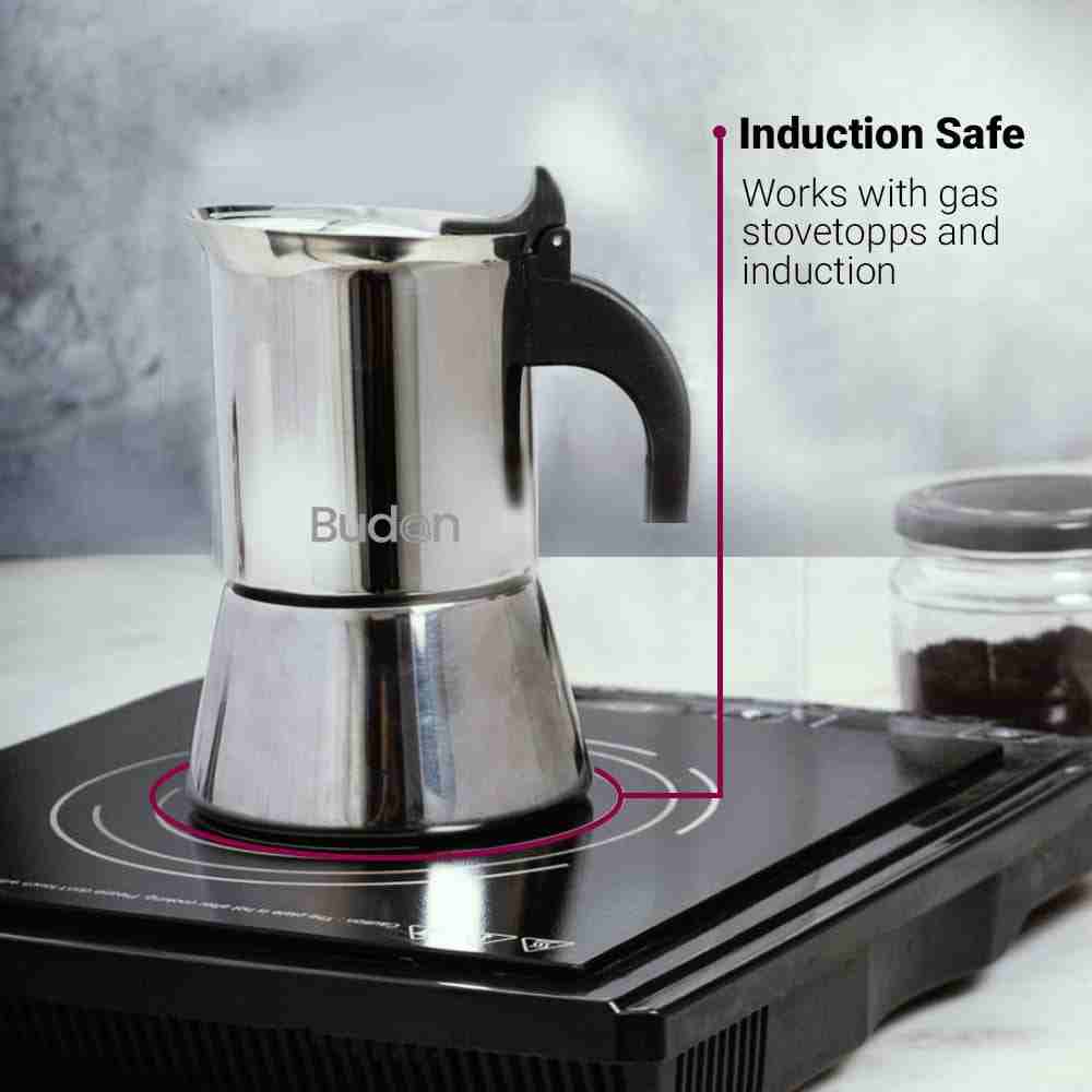 Budan Moka Pot Stainless Steel Coffee Maker (2 Cup)