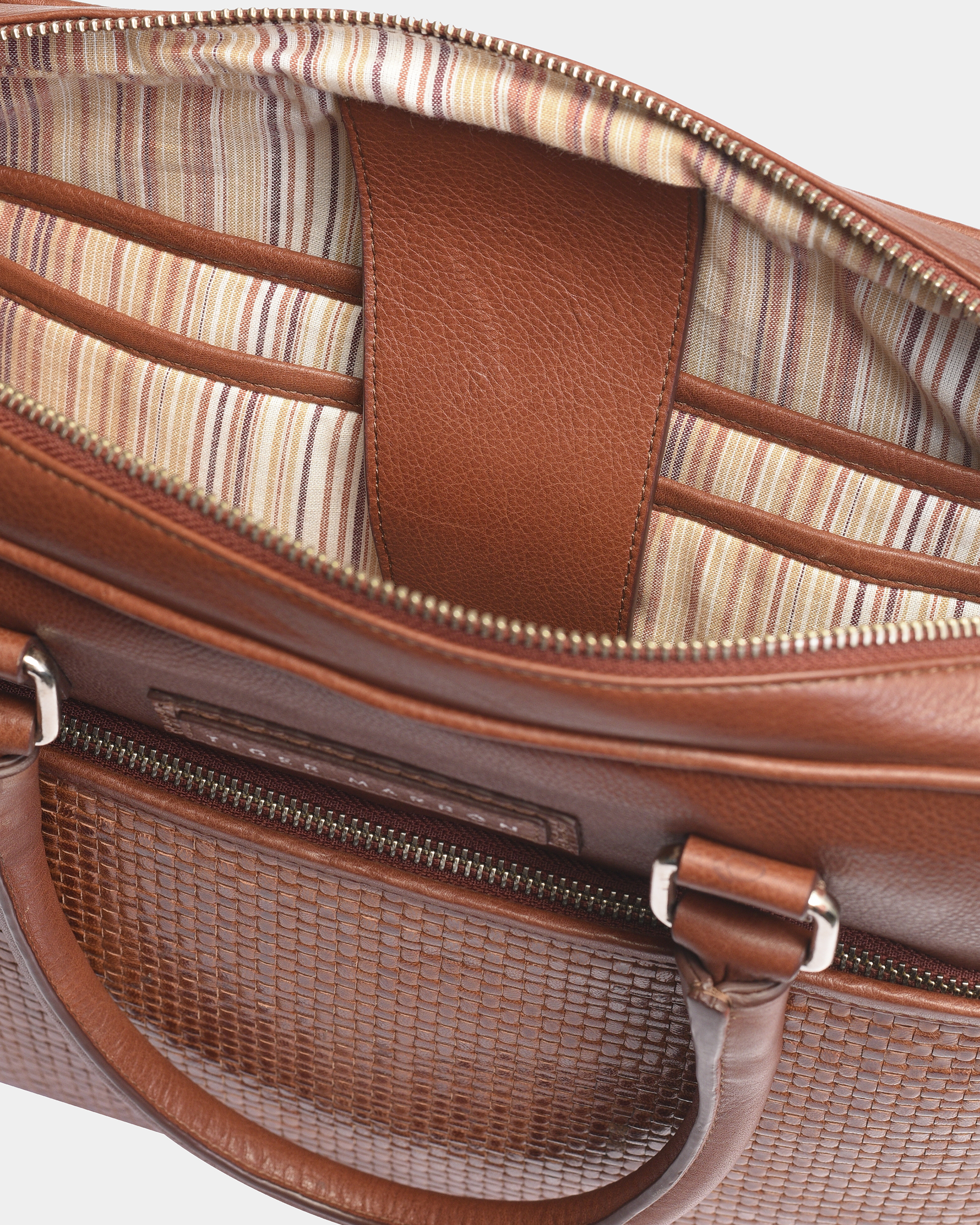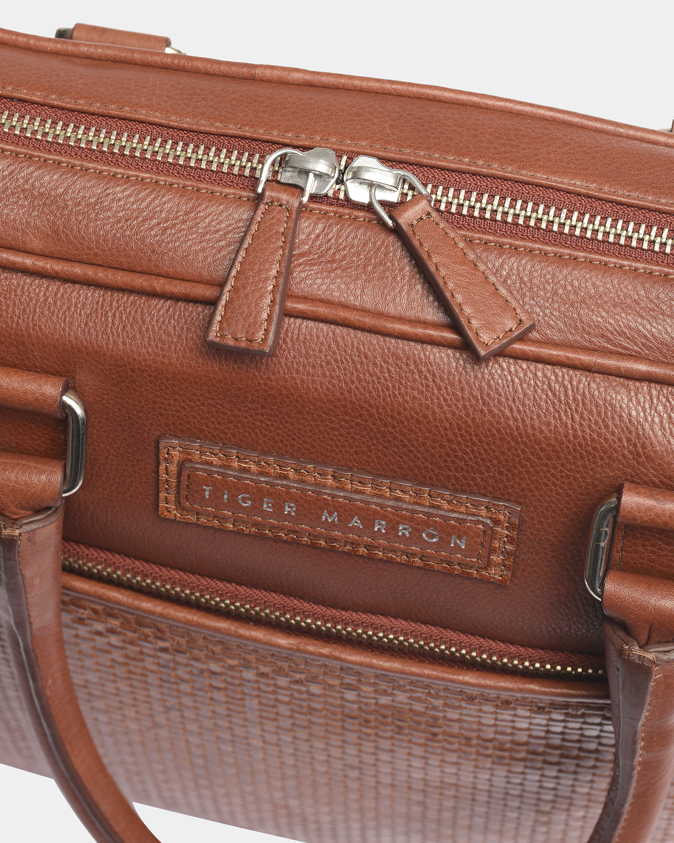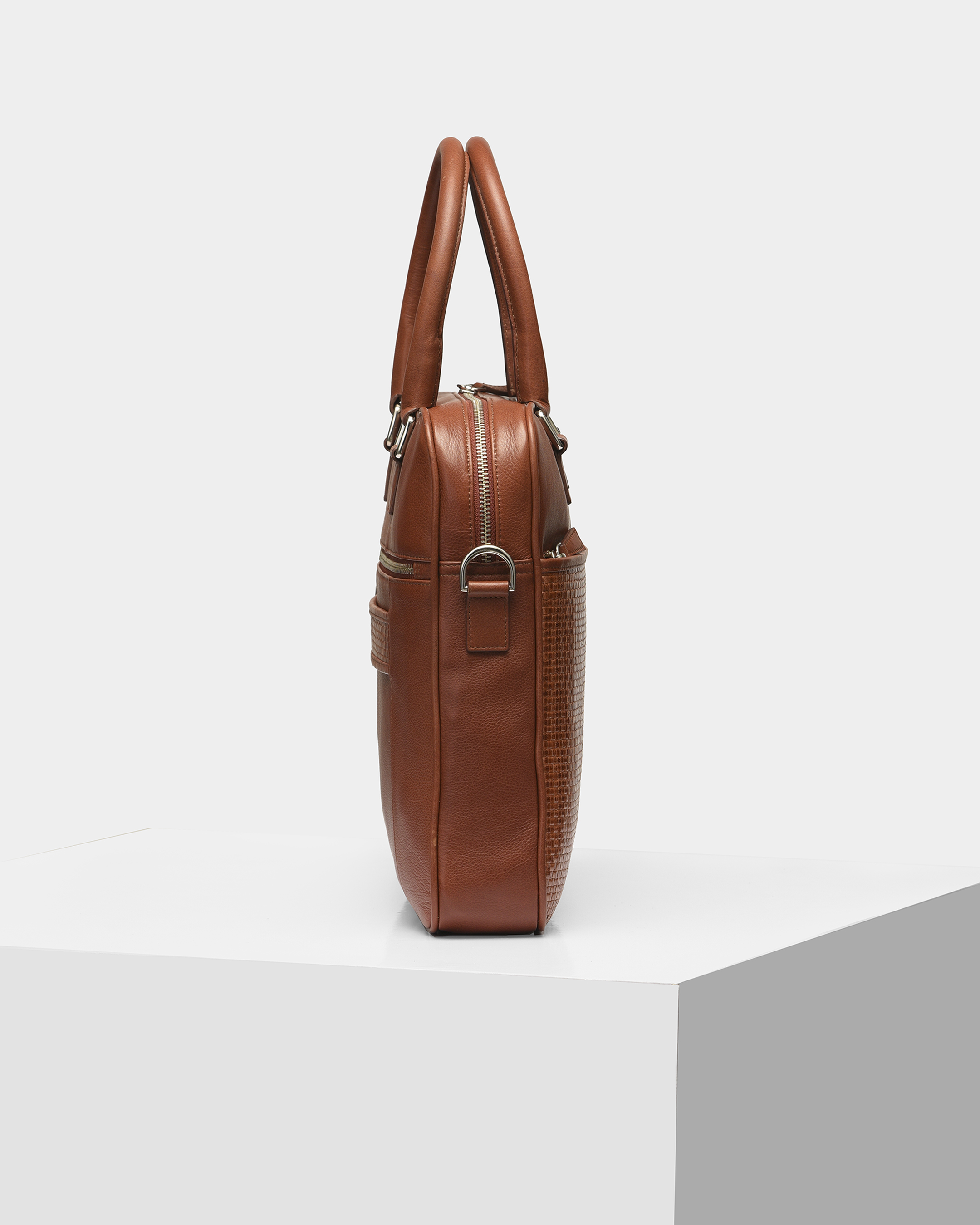 The down to business brown is a structured laptop bag crafted from durable materials with organizational compartments and secure closures. It features a professional design with padded interior protection and comfortable carrying options. Designed for daily commuting and business travel, it accommodates most standard laptops while maintaining a sleek profile.