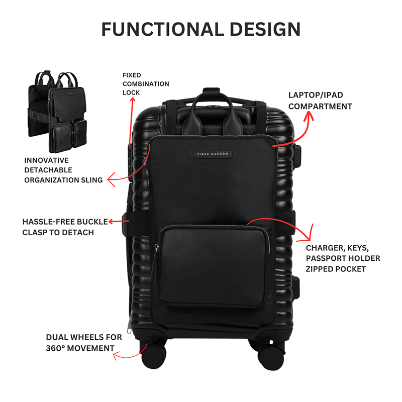 - Design: Hard-case trolley bag with a detachable organization sling.