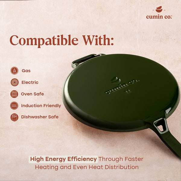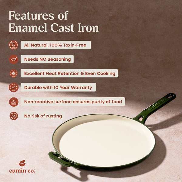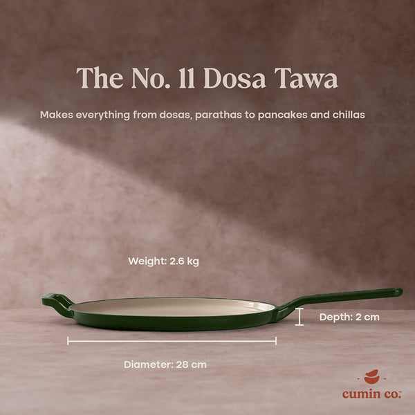 No. 11 Enamel Coated Cast Iron Dosa Tawa-Moringa (Green)