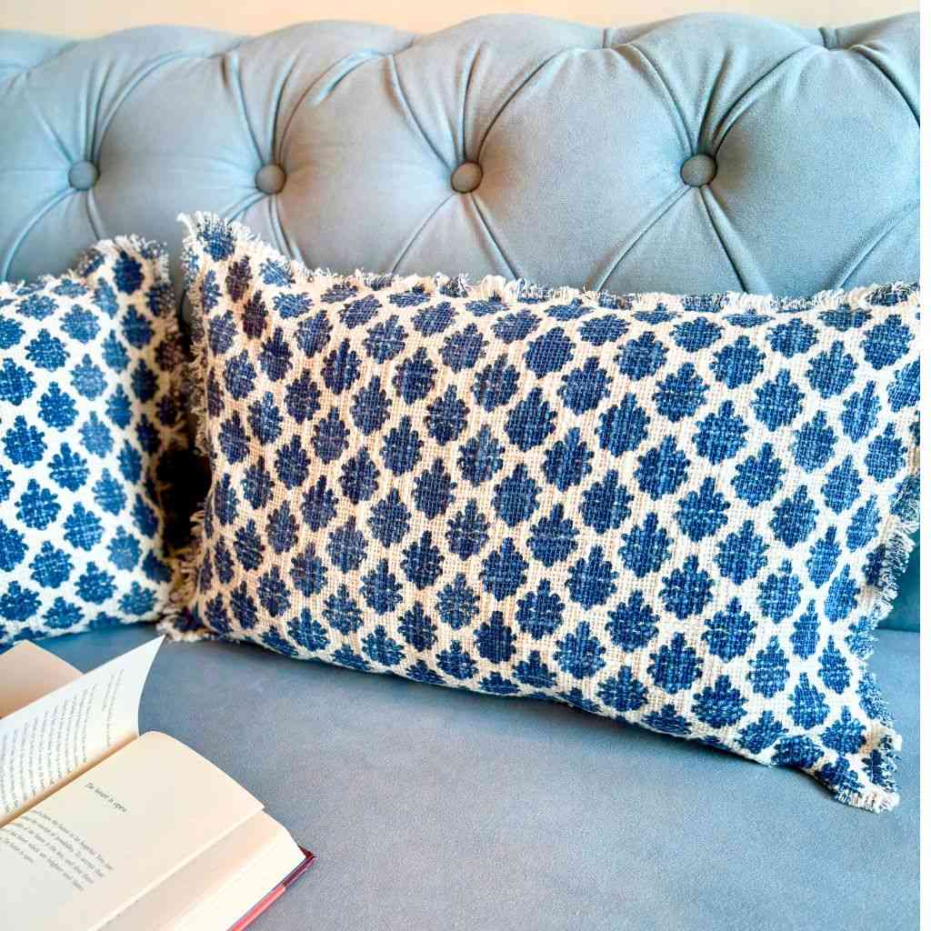 Home / Products / Cushion Covers / THE LITTLE DETAILS / Indigo Mirage Cushion Cover long