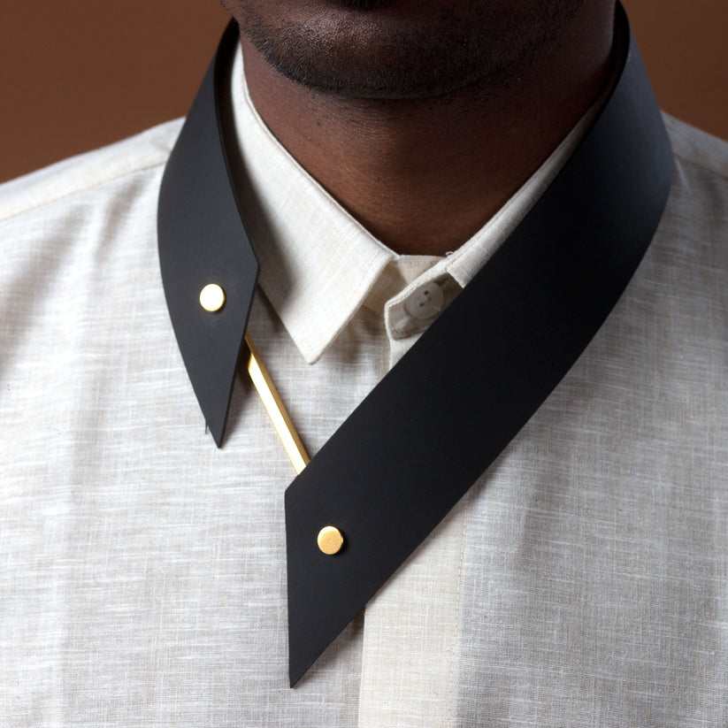 With this innovative kit, you can effortlessly construct two distinct compositions of a neck collar, interchangeably known as 'Kane' and 'Abel'. Style Tip: 'Kane' and 'Abel' are a dynamic duo of smart statement pieces, perfectly suited for pairing with a crisp button-down shirt or accentuating your décolletage.