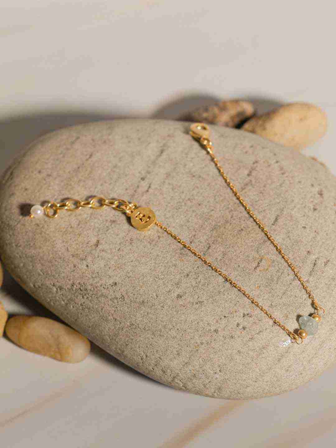 The Minimal Moonstone Bracelet by Berserk is a delicate piece featuring a luminous moonstone set in a gold-plated brass band. Moonstone, known for its calming properties, is believed to enhance intuition and emotional balance. This bracelet's minimalist design ensures it complements various outfits, making it a versatile addition to any jewelry collection.