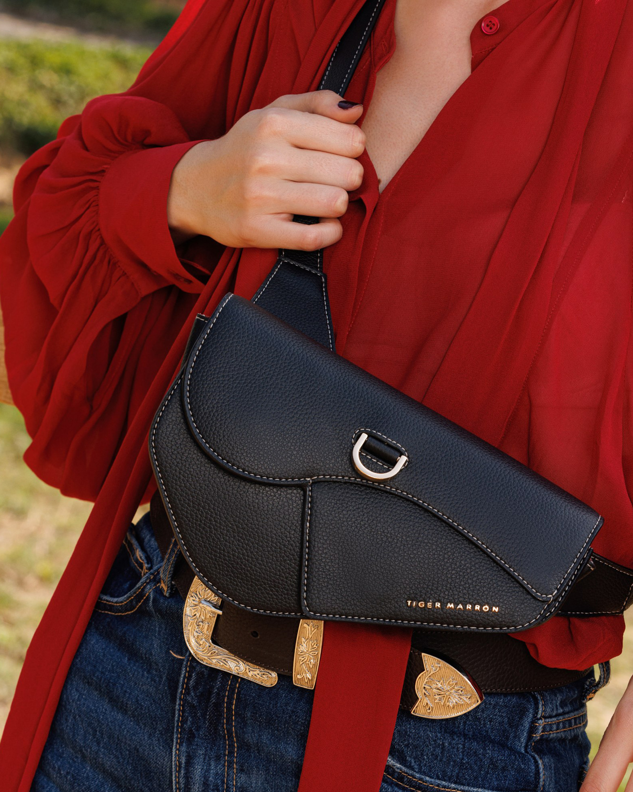The mustang saddle fanny is a black fanny pack from the martingale collection, designed with a structured silhouette and adjustable waist strap. It features a main compartment with secure zip closure and external pocket for easy access to essentials. Crafted for hands free convenience, it works well for travel, daily errands or active pursuits.