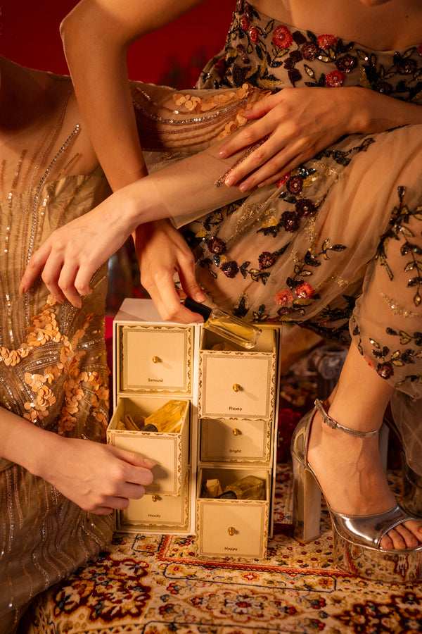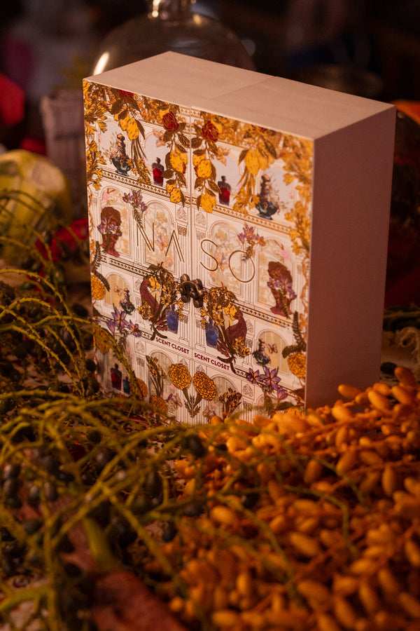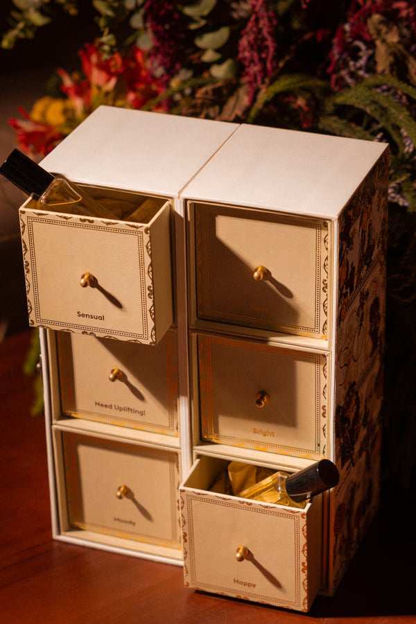 The Scent Closet is a luxurious gift box that offers a curated collection of six unique fragrances, each designed to match different moods and occasions. Housed in an elegantly crafted box with intricate gold foiling, this set is perfect for those who appreciate a diverse olfactory experience. Whether you're seeking a scent to uplift, relax, or invigorate, The Scent Closet has something for every preference.