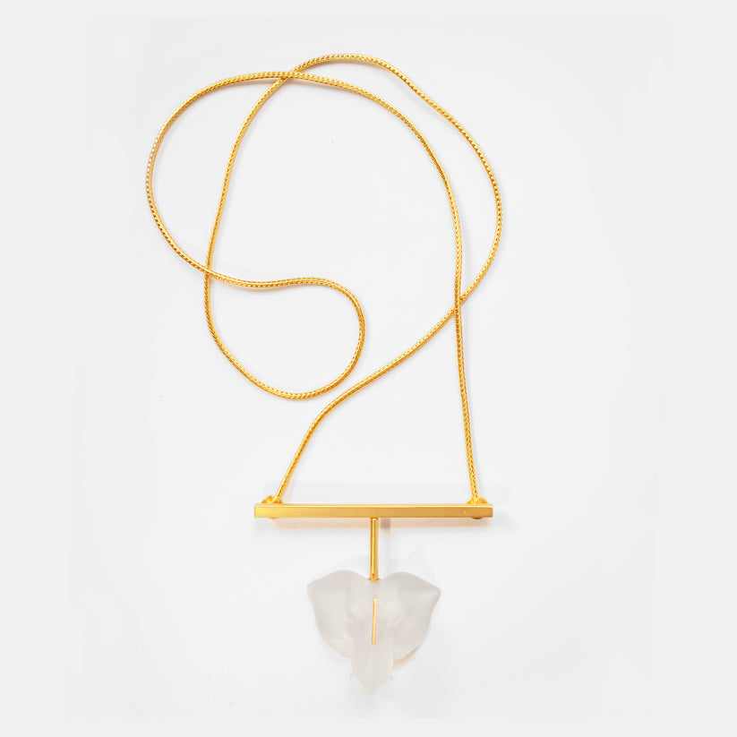 Embrace the timeless elegance of this gold-plated brass elephant necklace. The striking elephant motif, conscientiously crafted, takes center stage on a sleek gold bar pendant. Suspended on a chain, this statement piece effortlessly blends modern aesthetics with nature's grace. A symbol of wisdom and strength, this necklace is a perfect addition to your festive or special occasion attire.