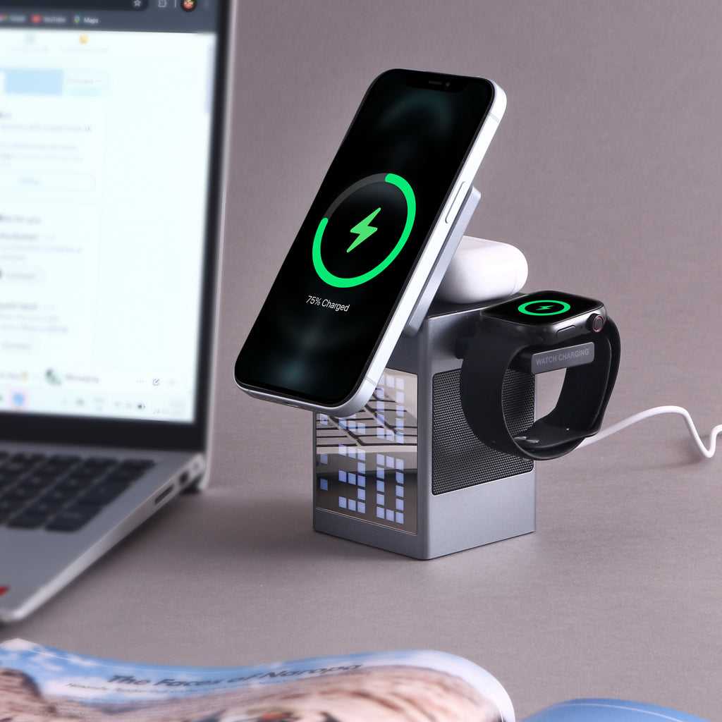 Pixel Dock - 5 in 1 Wireless Charger with Speaker and Clock