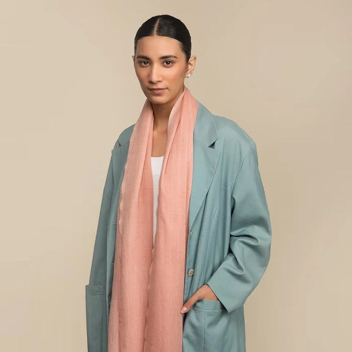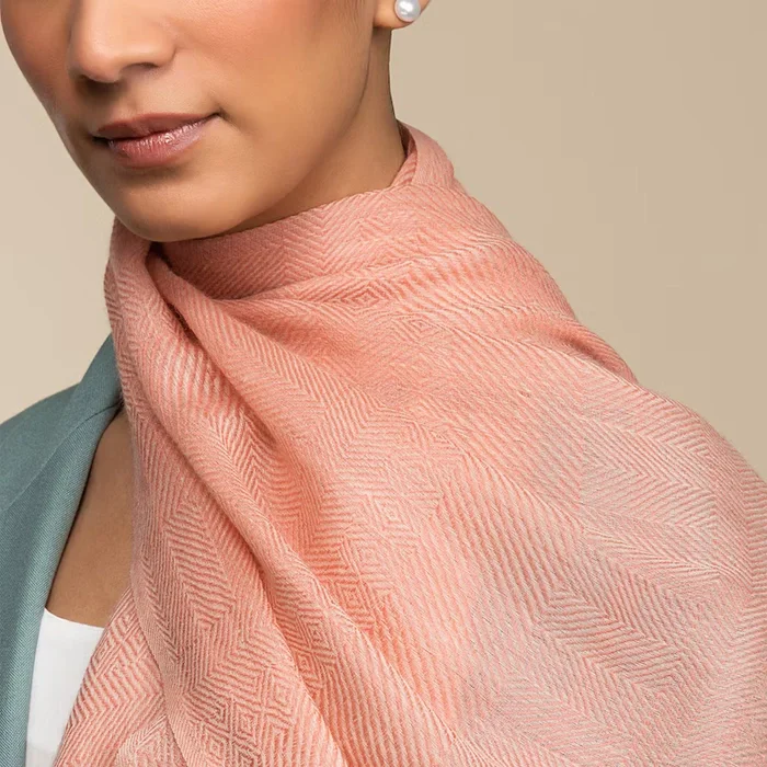 Powder Pink Herringbone Cashmere and Vicuña Wool Scarf