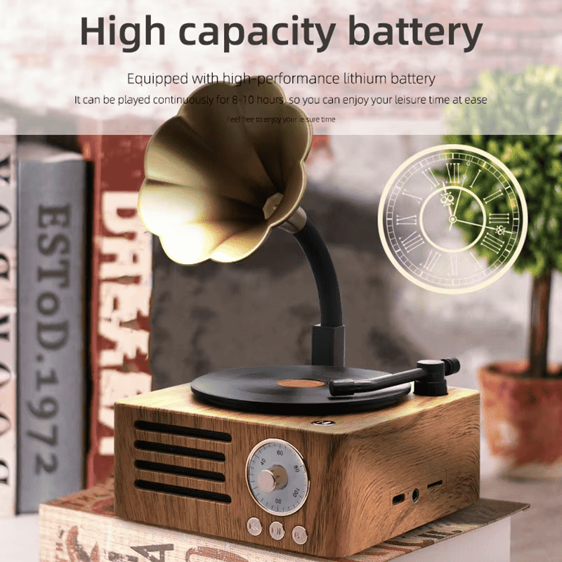 Retro Gramophone Bluetooth Speaker with Rotating Disc