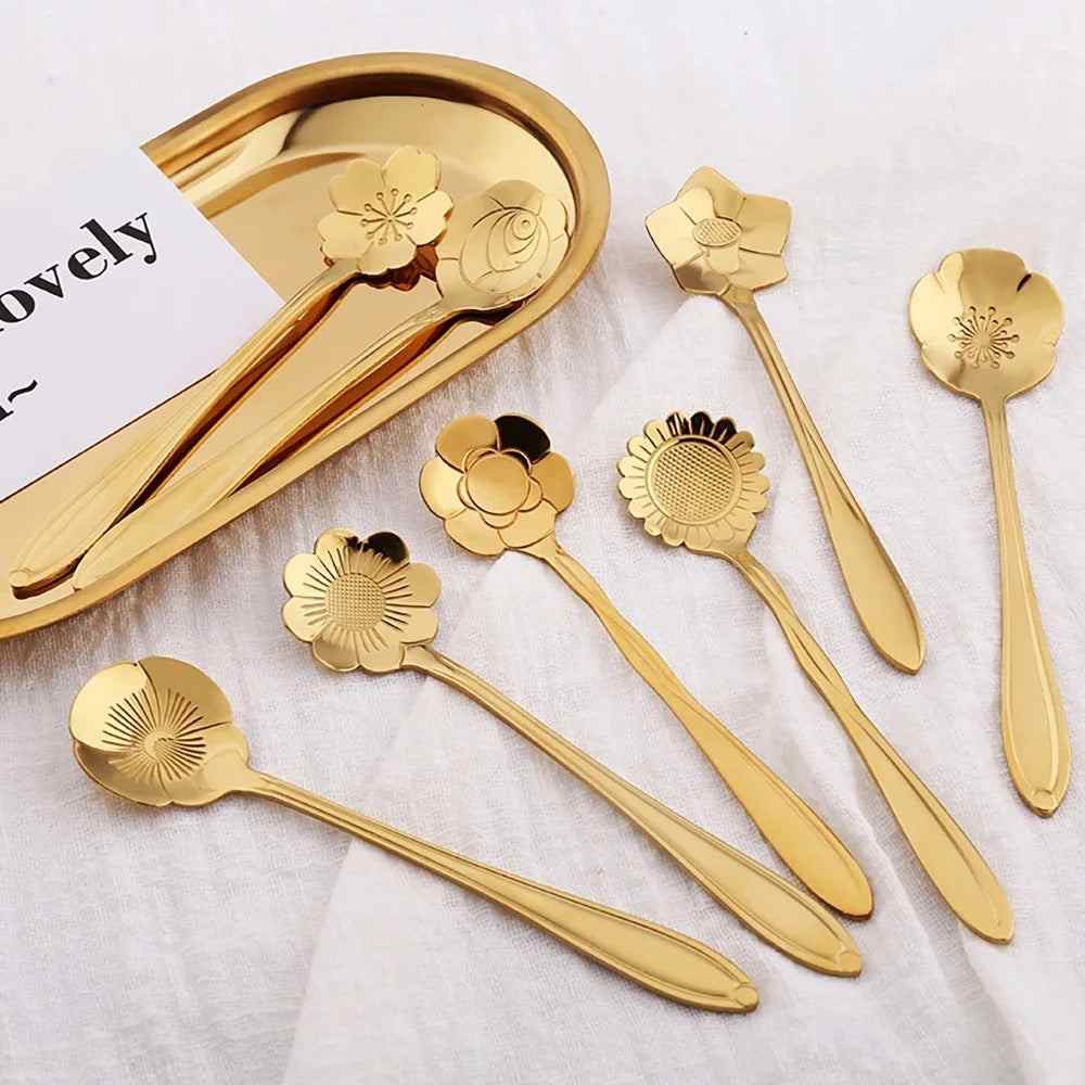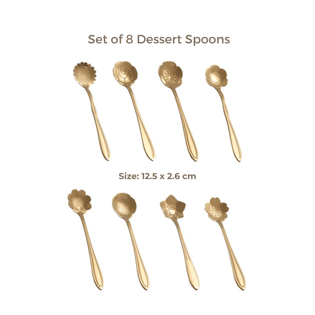 Home / Products / Dinner Set / WHITES & PASTELS / Set of 8 Gold Flower Dessert Spoons