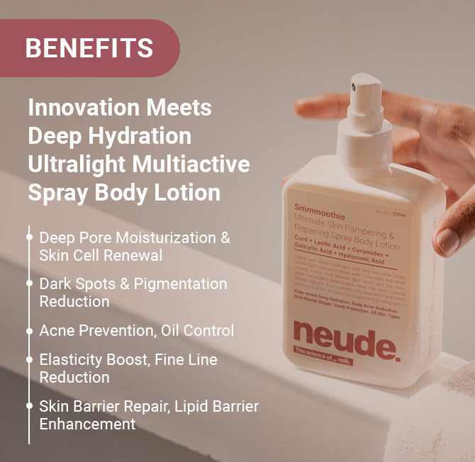 Lightweight body milk in a spray format — “Shake it. Spray it. Spread it."