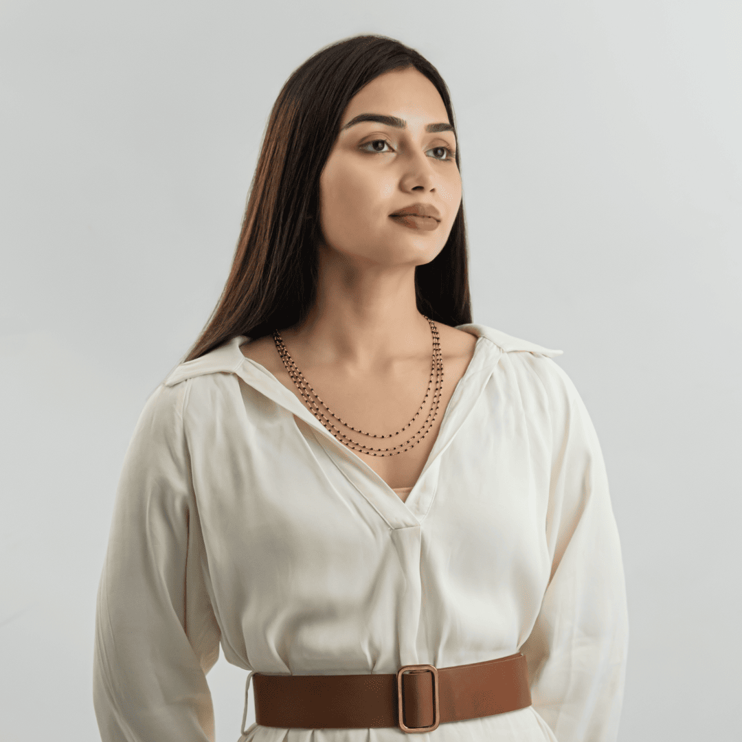 Style: Contemporary triple-layer necklace designed to create effortless depth and refined elegance