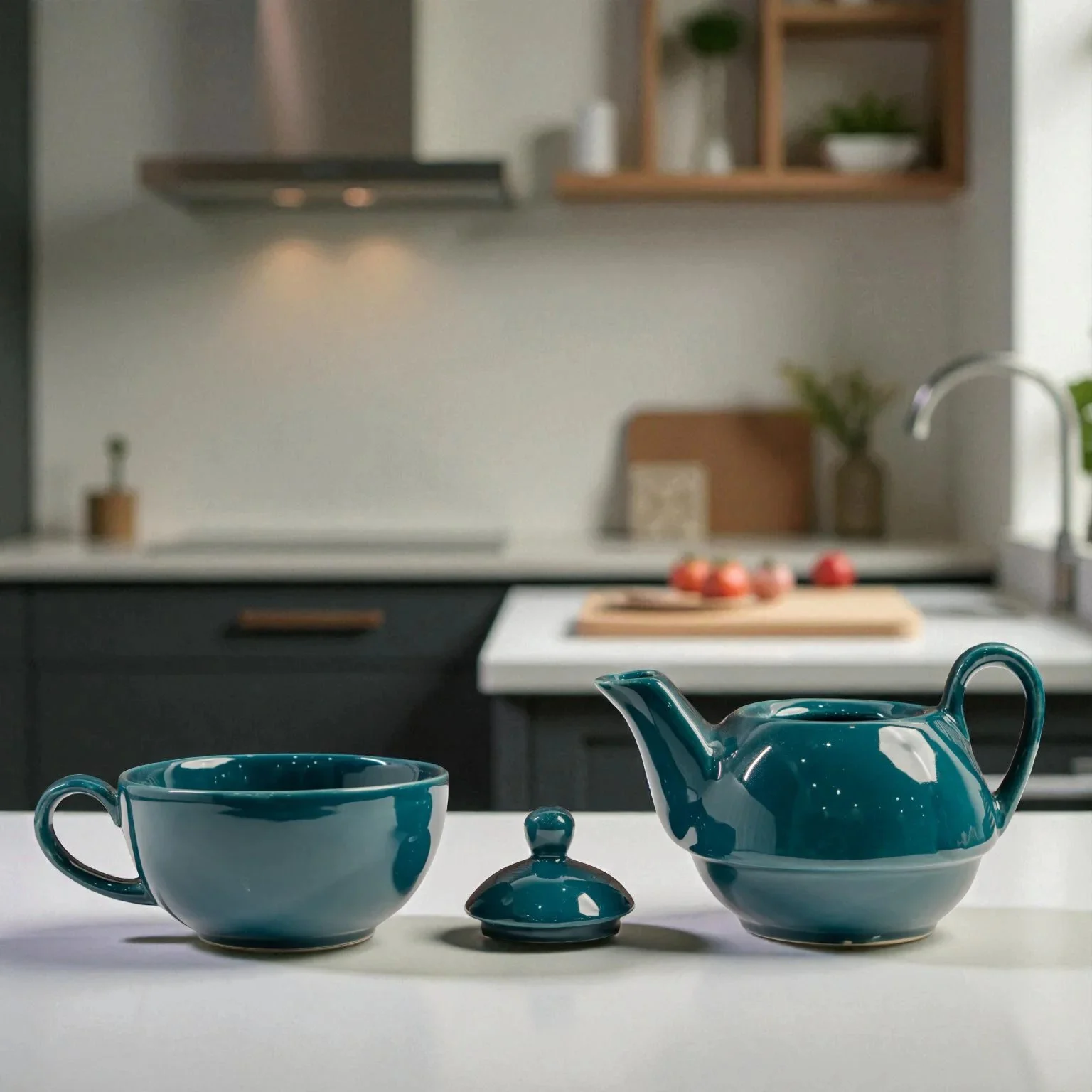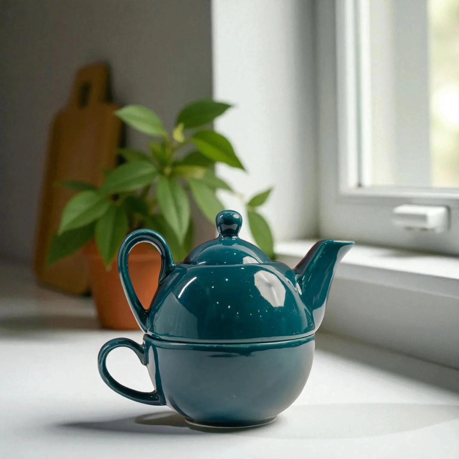 The Teal Whisper Ceramic Stackable Solo Tea Set is a thoughtfully designed piece that brings calm, intention, and elegance to everyday tea rituals. Crafted in a soothing teal tone, this compact set is designed for solo moments—where function meets mindful living. Its stackable form keeps the setup minimal and clutter-free, while the soft ceramic finish adds warmth and quiet charm. Perfect for slow mornings or evening wind-downs, it turns a simple cup of tea into a grounding experience.