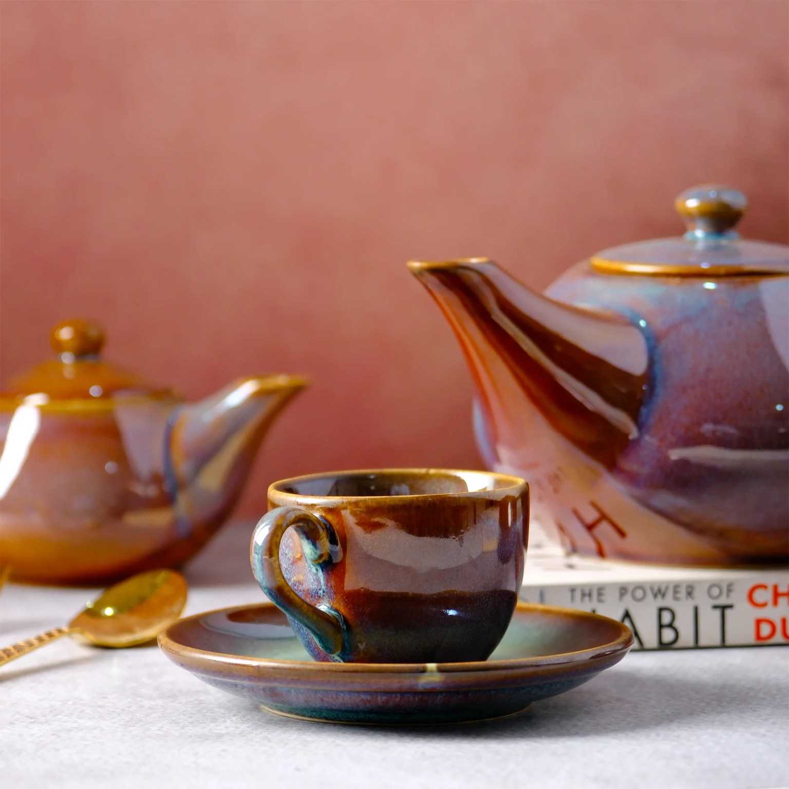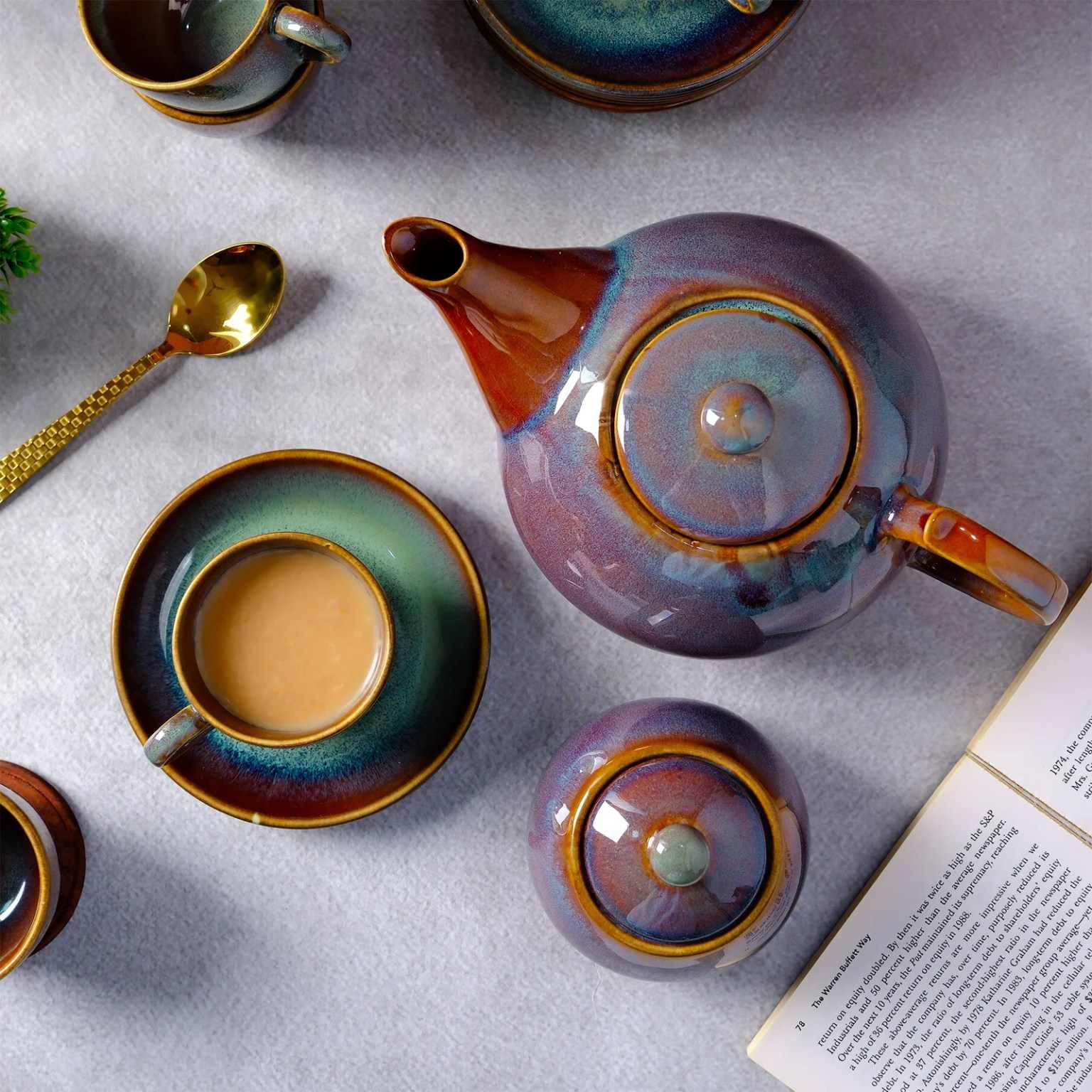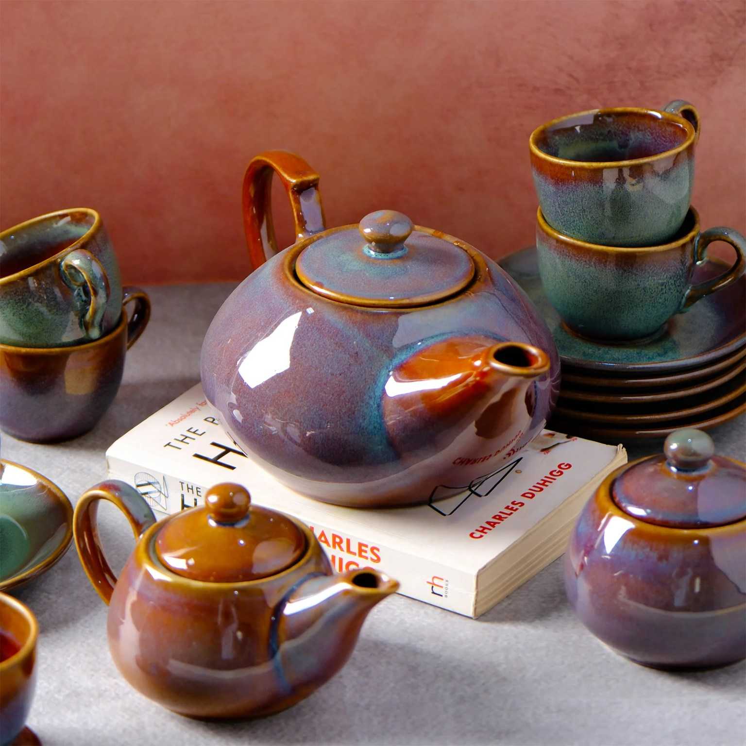 Aurora Bliss Tea Set - 15 Pieces Tea Set (6 Cups & Saucer, 1 Tea Pot, Milk Pot, Sugar Pot)