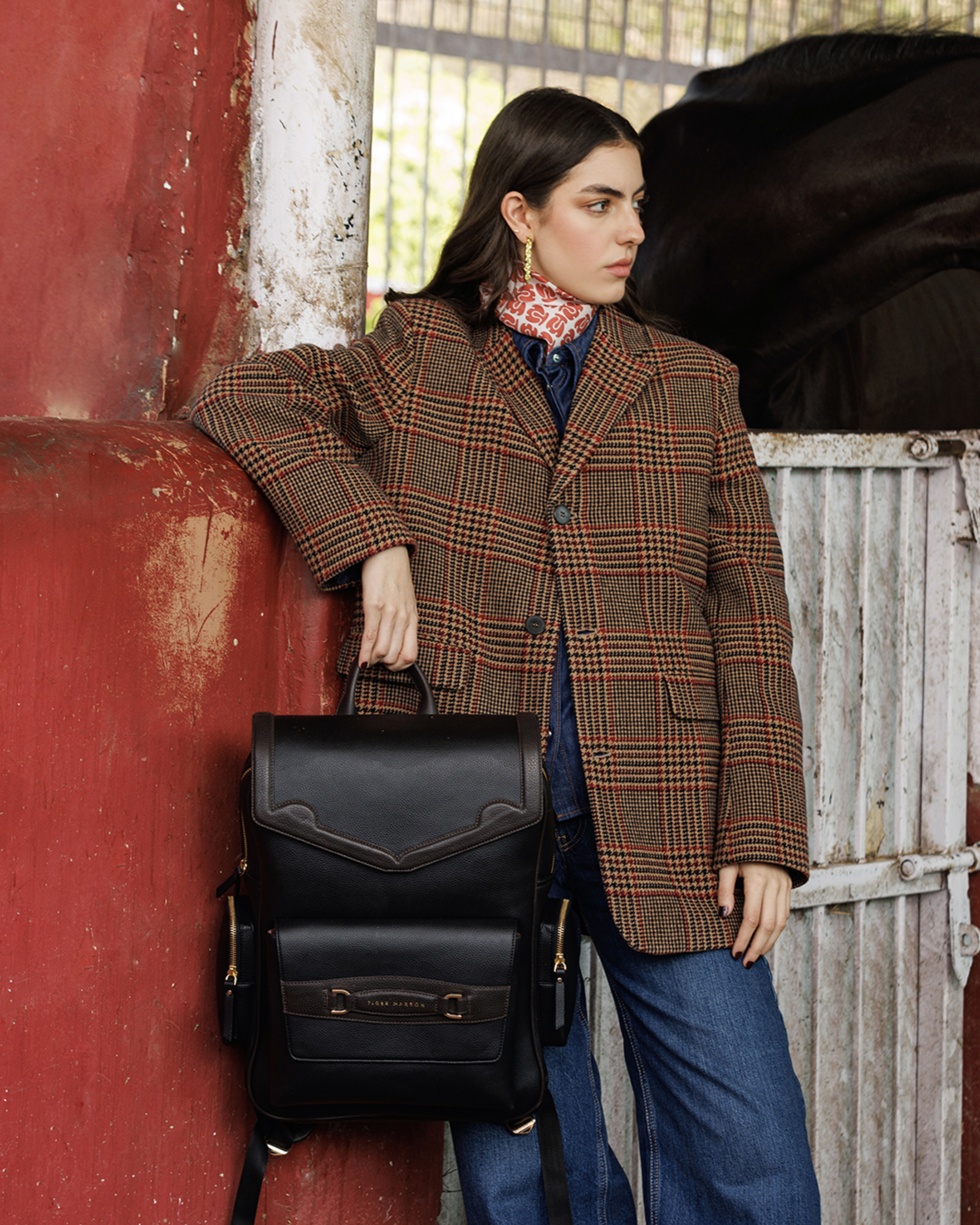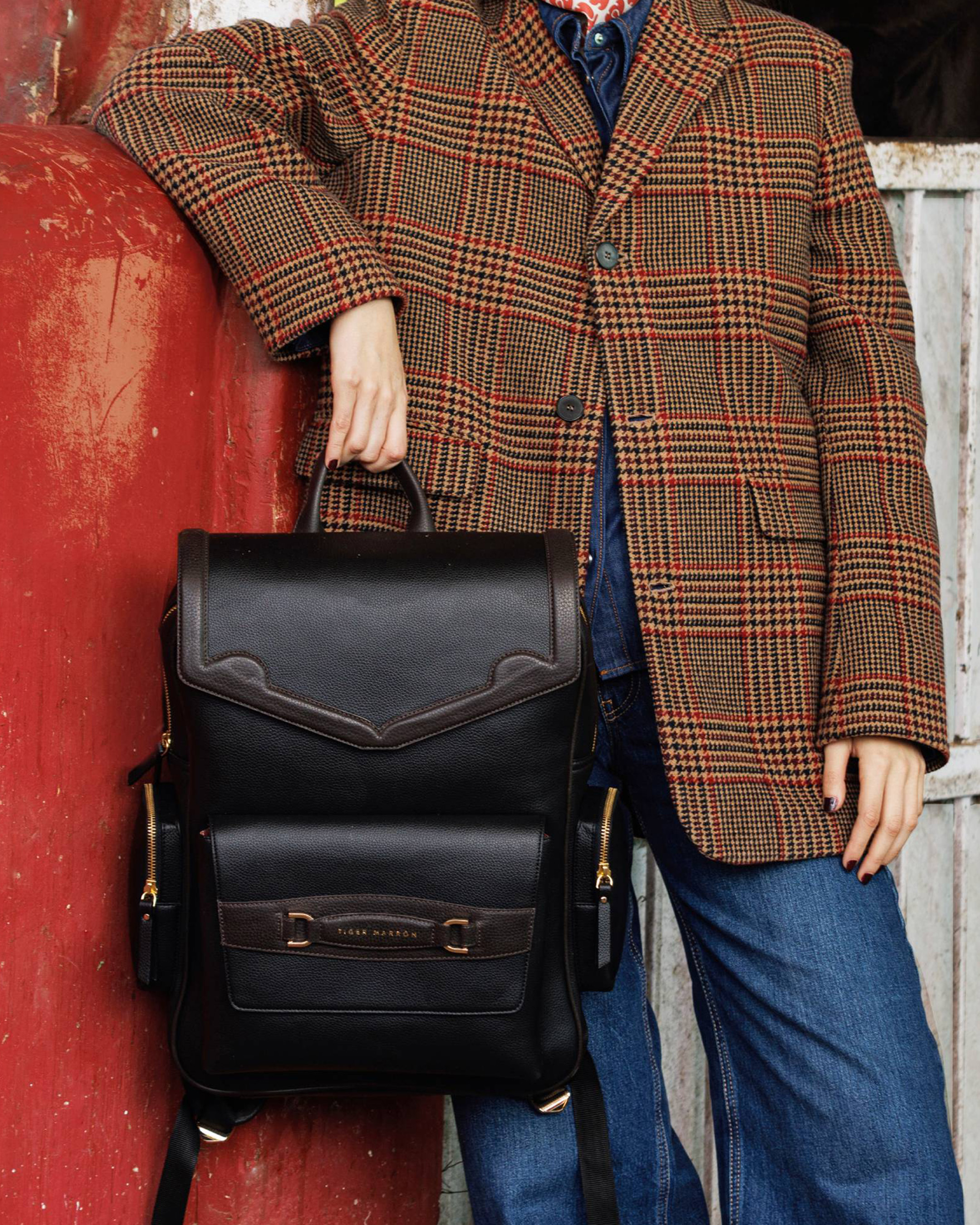 The wrangler backpack is a structured black backpack designed for everyday use with multiple compartments and durable construction. It features adjustable padded shoulder straps, a spacious main compartment, and exterior pockets that provide organized storage for essentials. Part of the martingale collection, it combines practical functionality with a sleek finish.