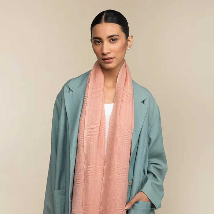 Powder Pink Herringbone Cashmere and Vicuña Wool Scarf