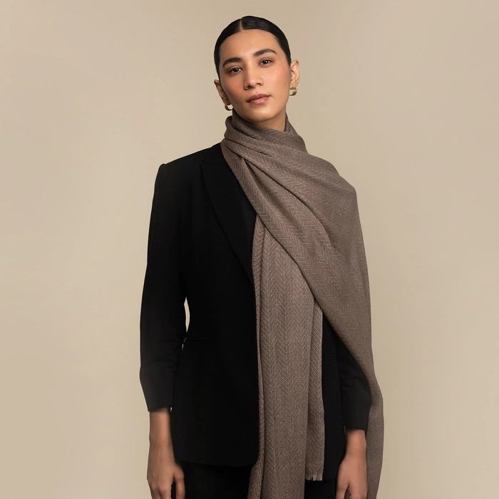 Brown Herringbone Cashmere and Vicuña Wool Scarf