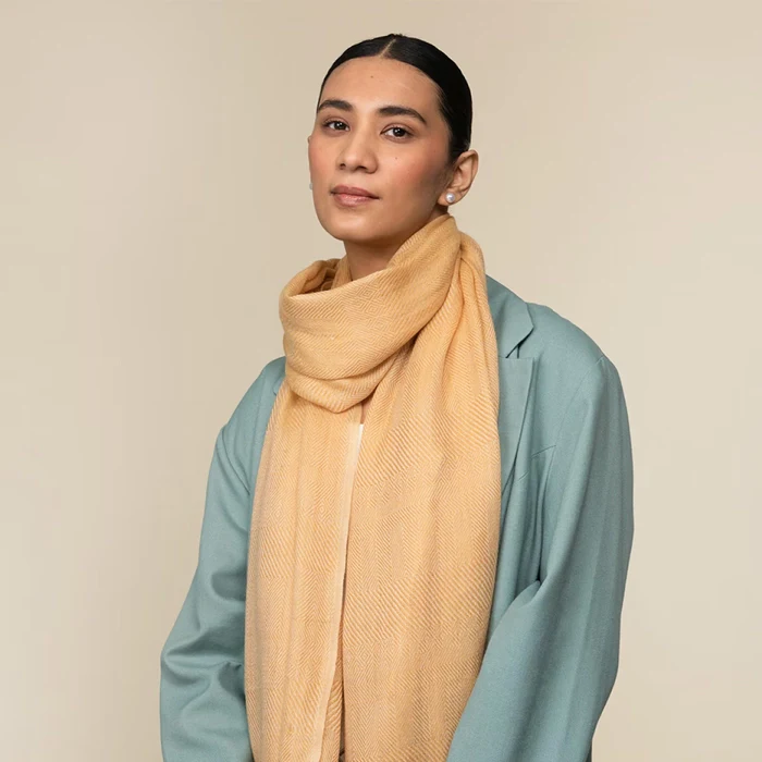 Yellow Herringbone Cashmere and Vicuña Wool Scarf