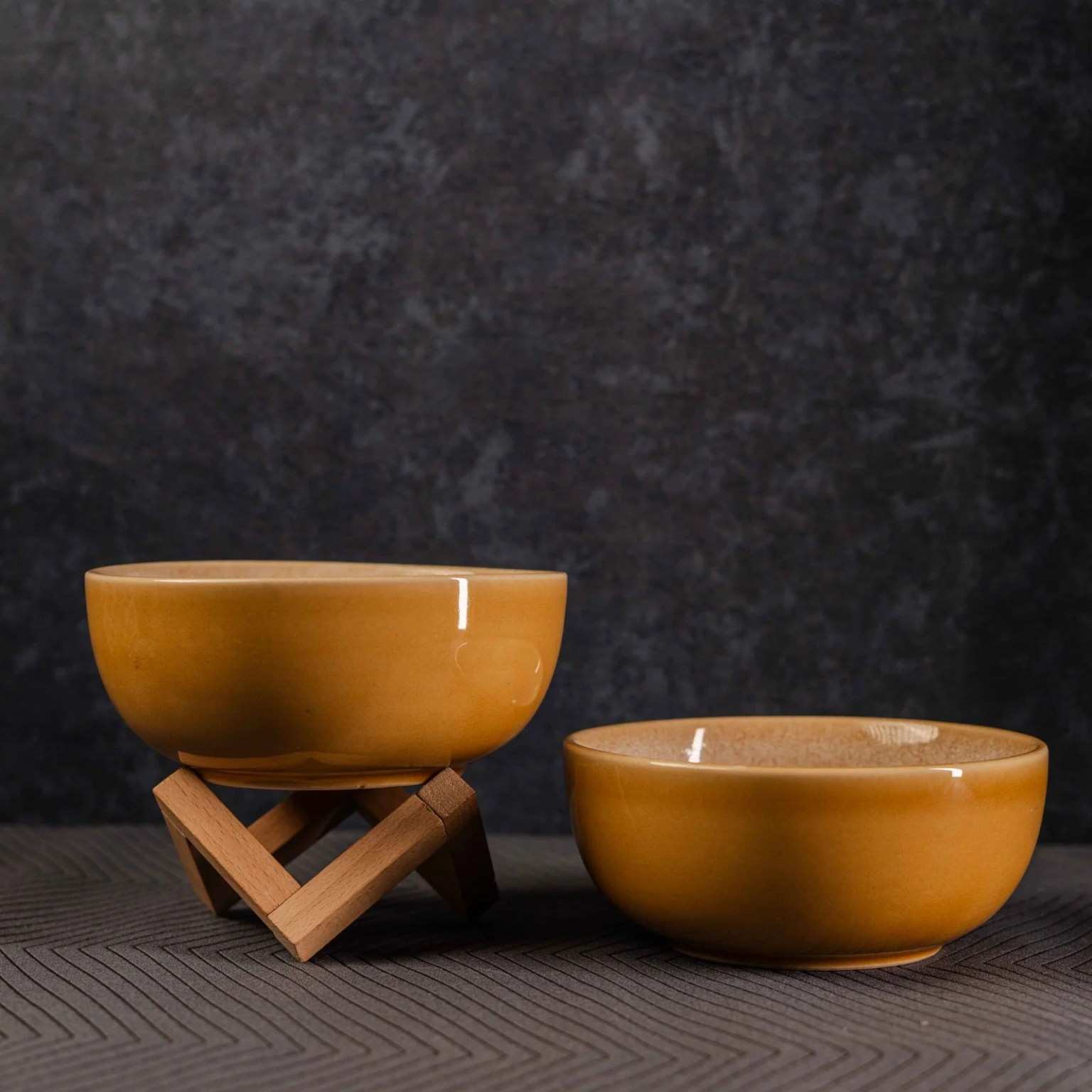 Luminous Saffron Ceramic Bowls Set of 2 Bowls