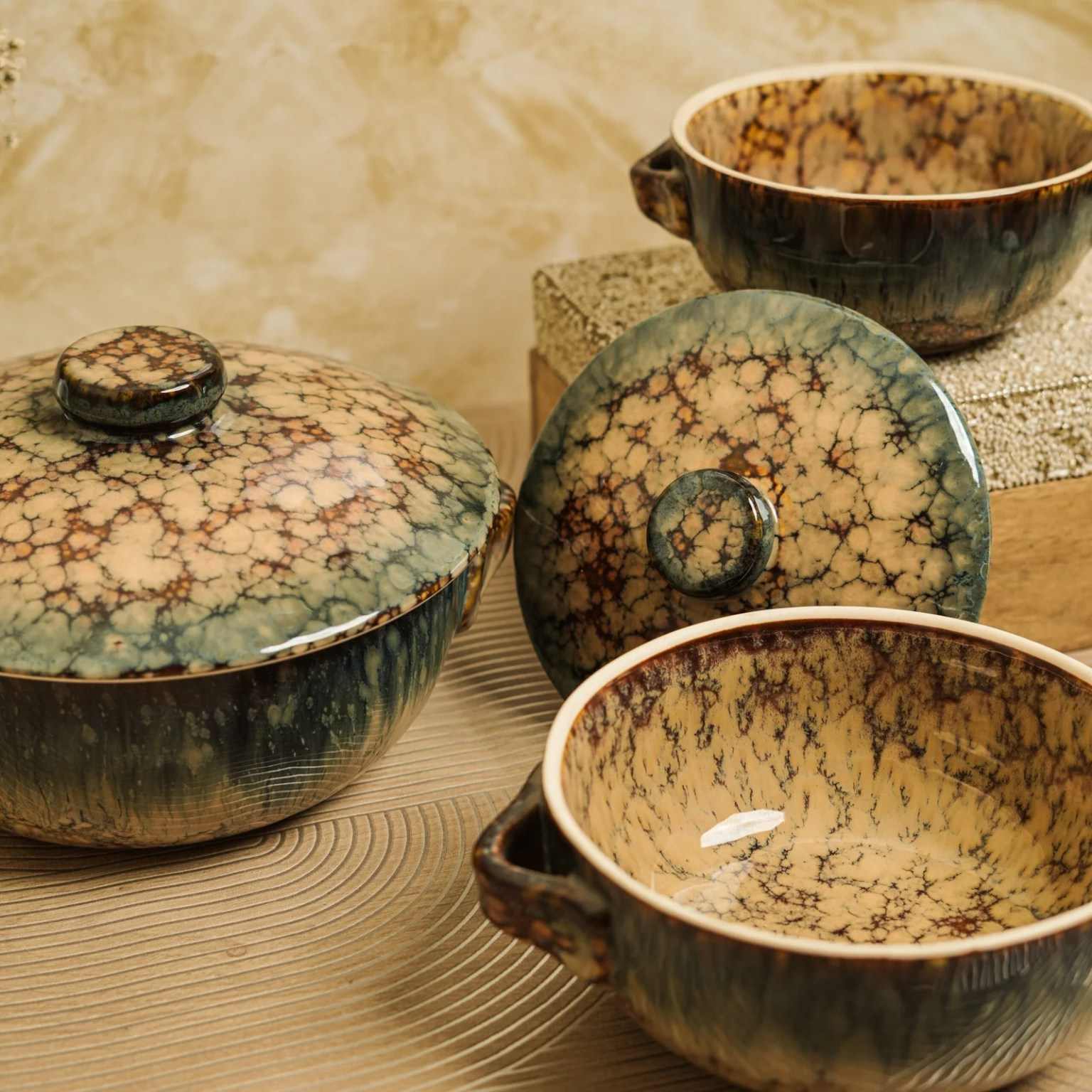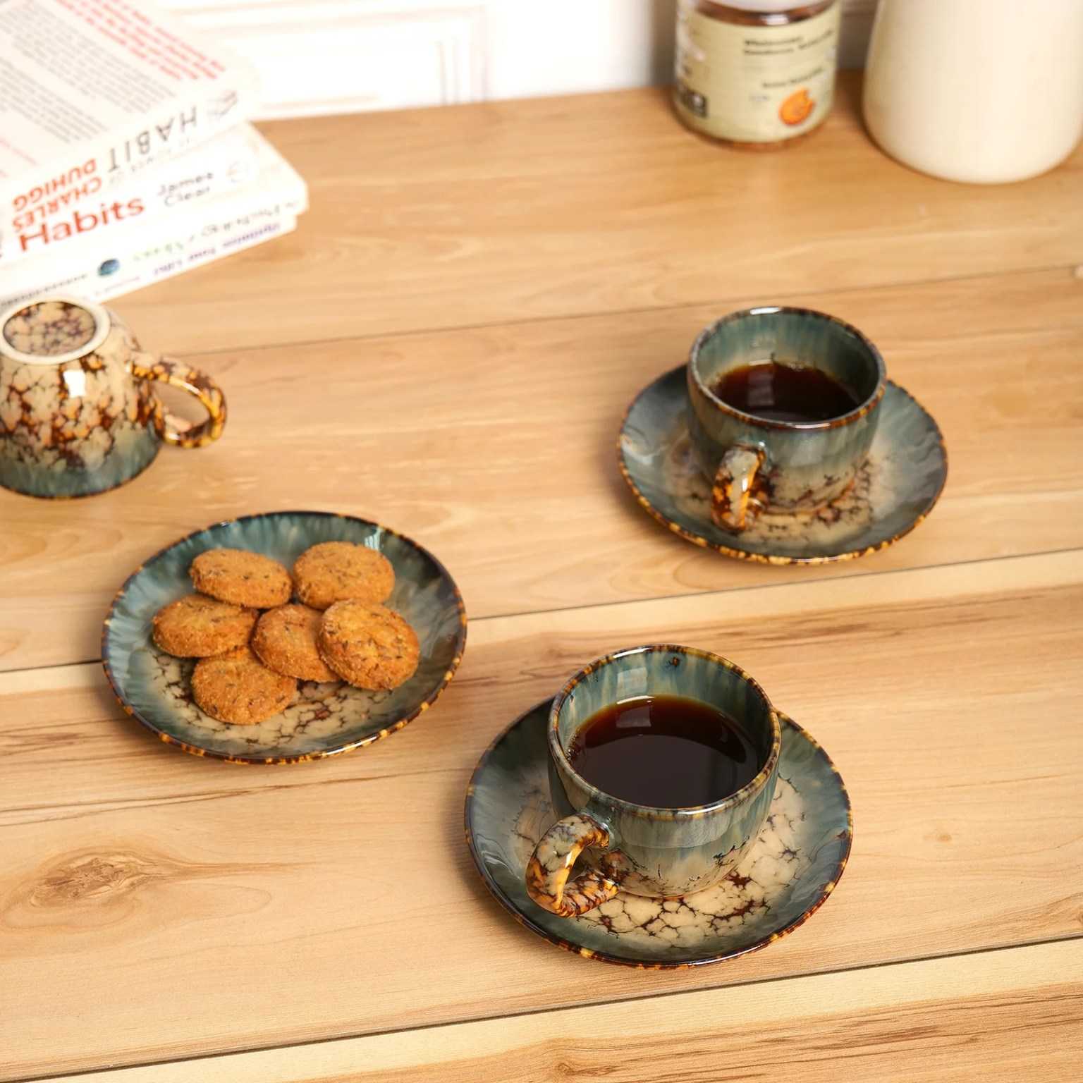 Earthen Grace Ceramic Cup and Saucer Set of 3