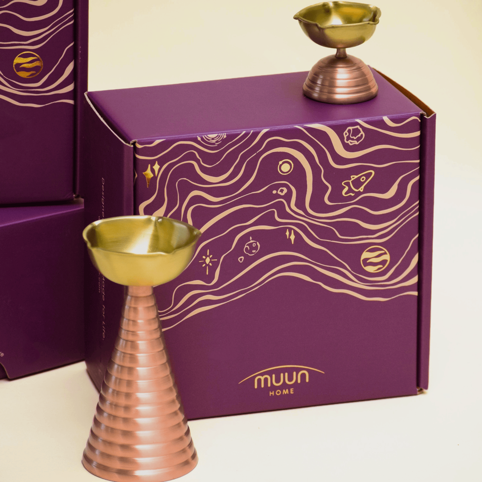Short Gift Set - Short Diya and Ringing bell - Amber