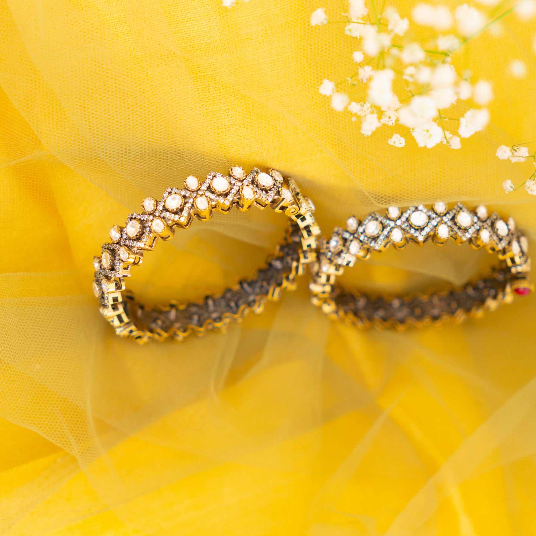 White Finish Diamond & Green Stone Bangles (Set of 2)