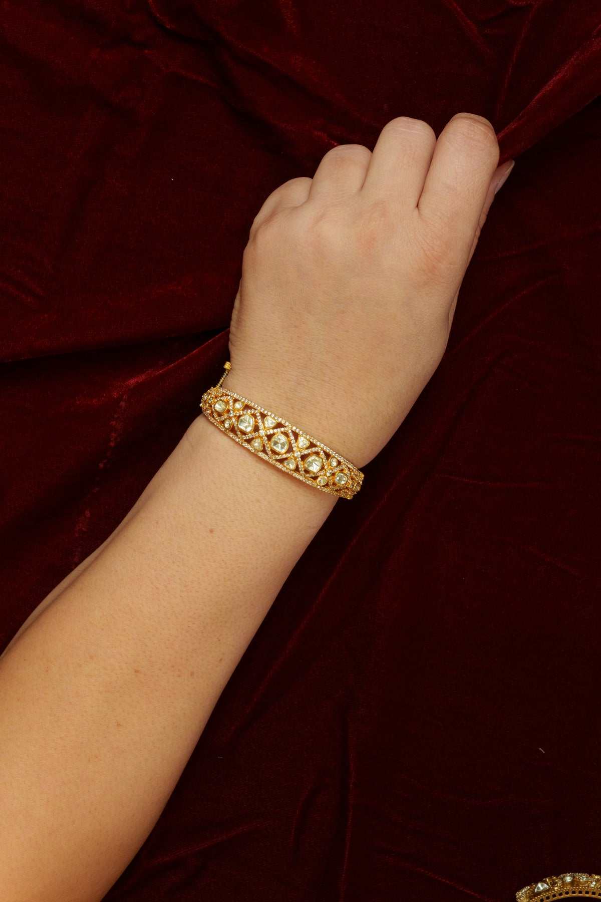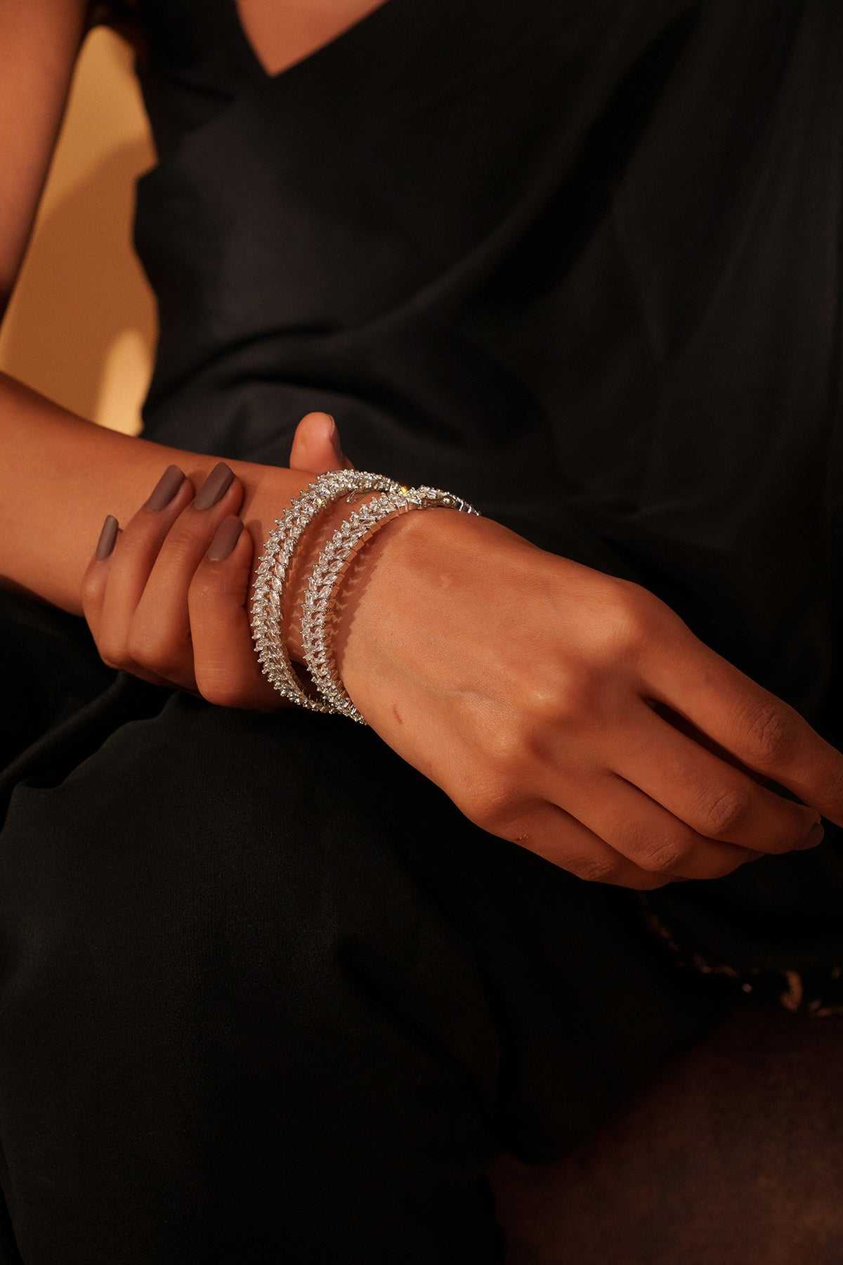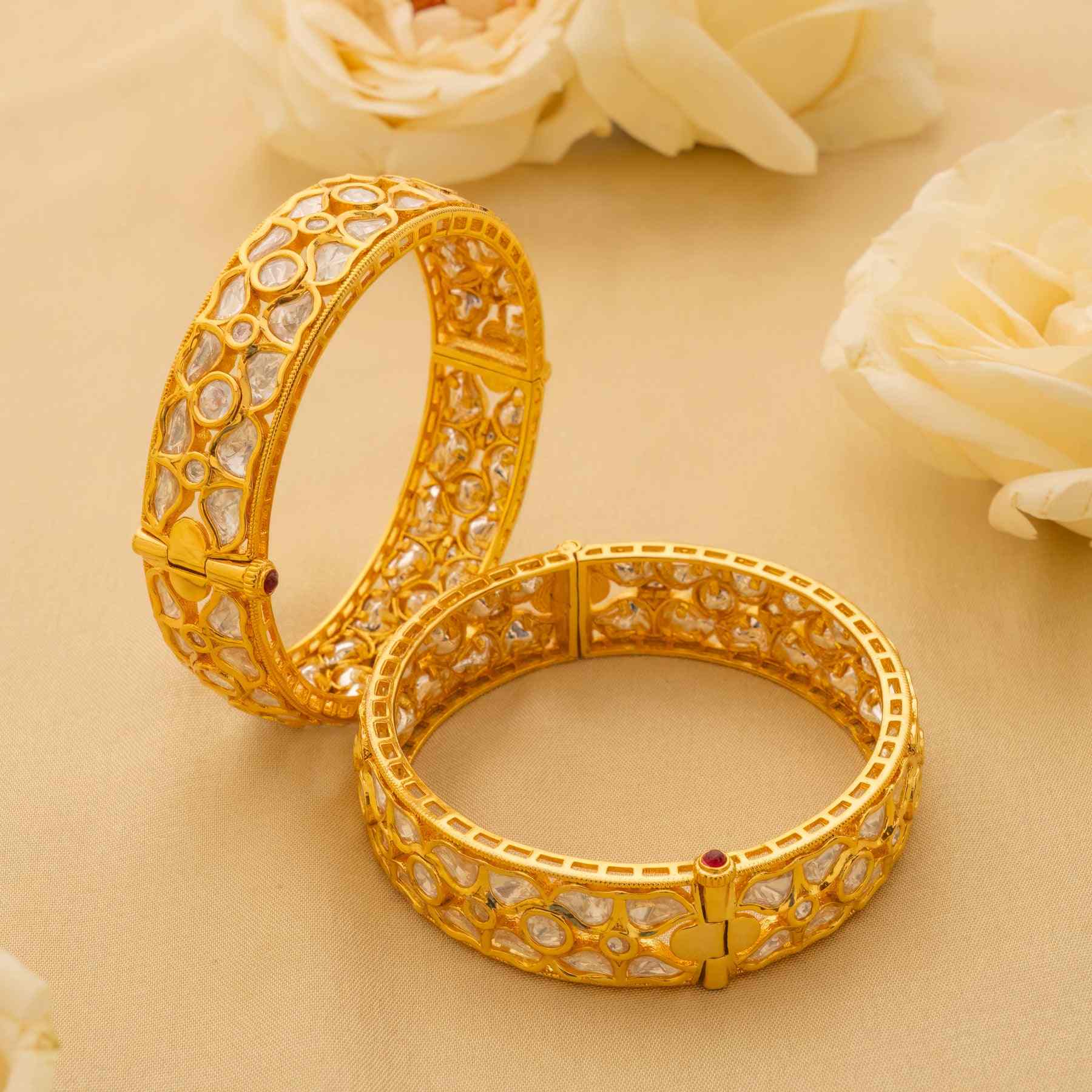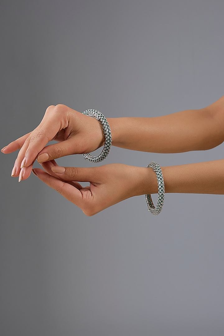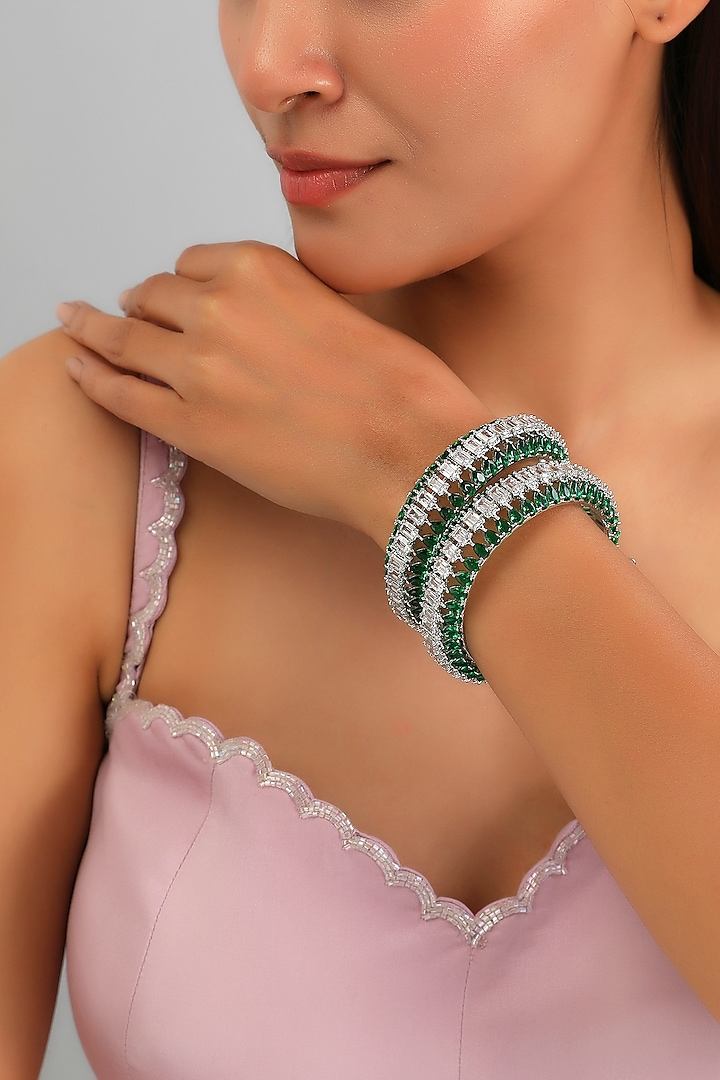 White Finish Diamond & Emerald Green Stone Openable Bangles (Set Of 2)