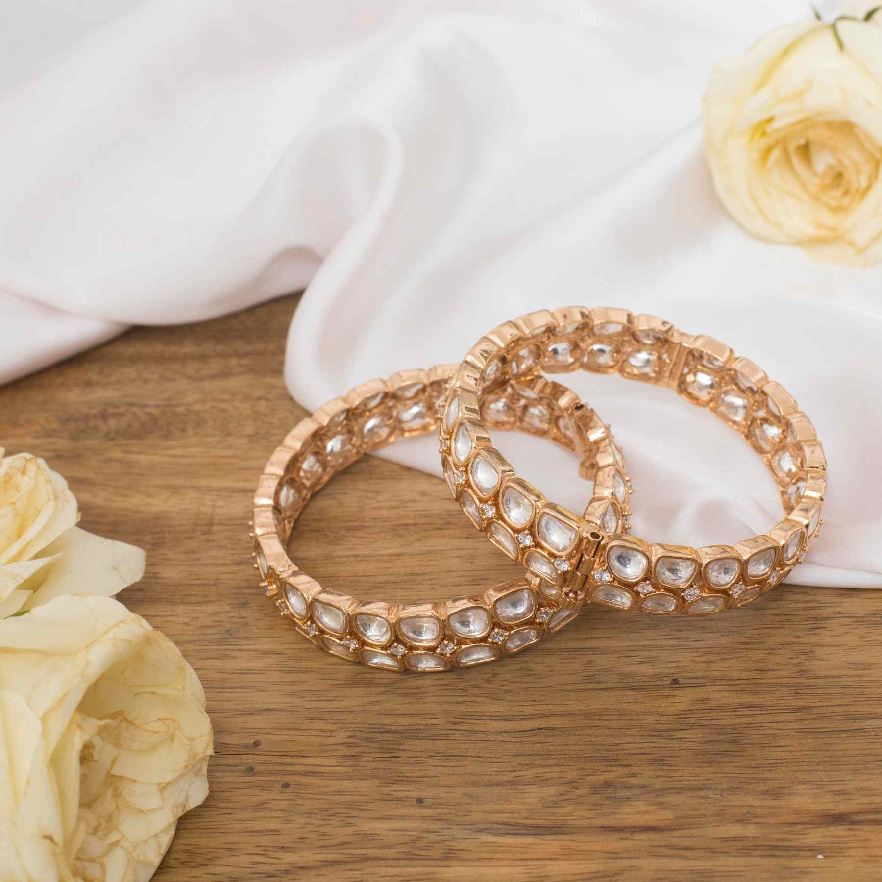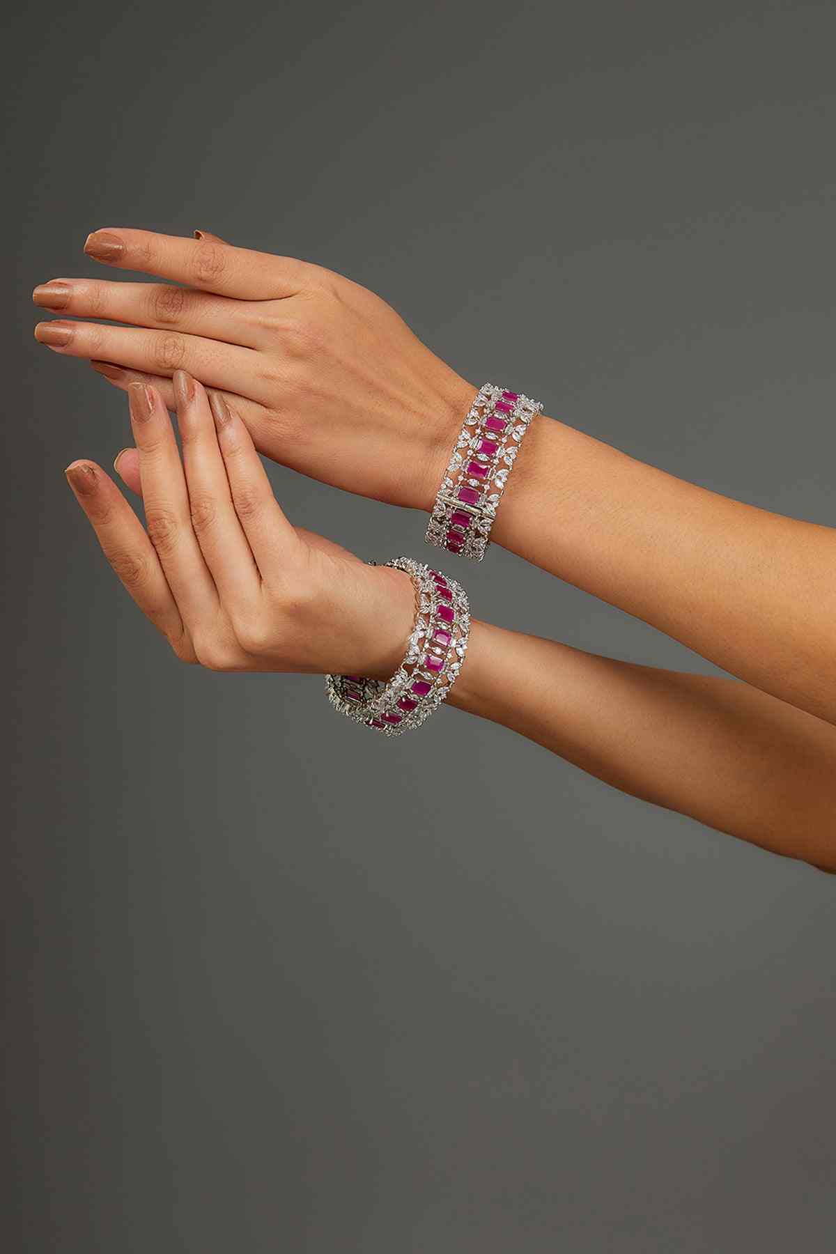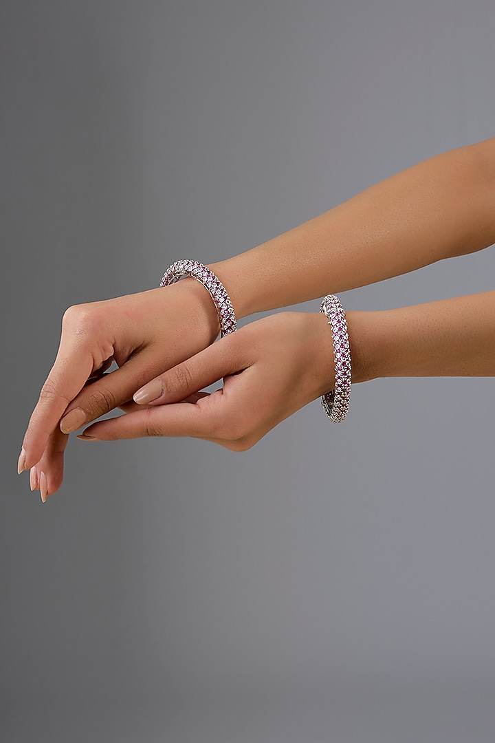 White Finish Diamond & Pink Stone Openable Bangles (Set Of 2)